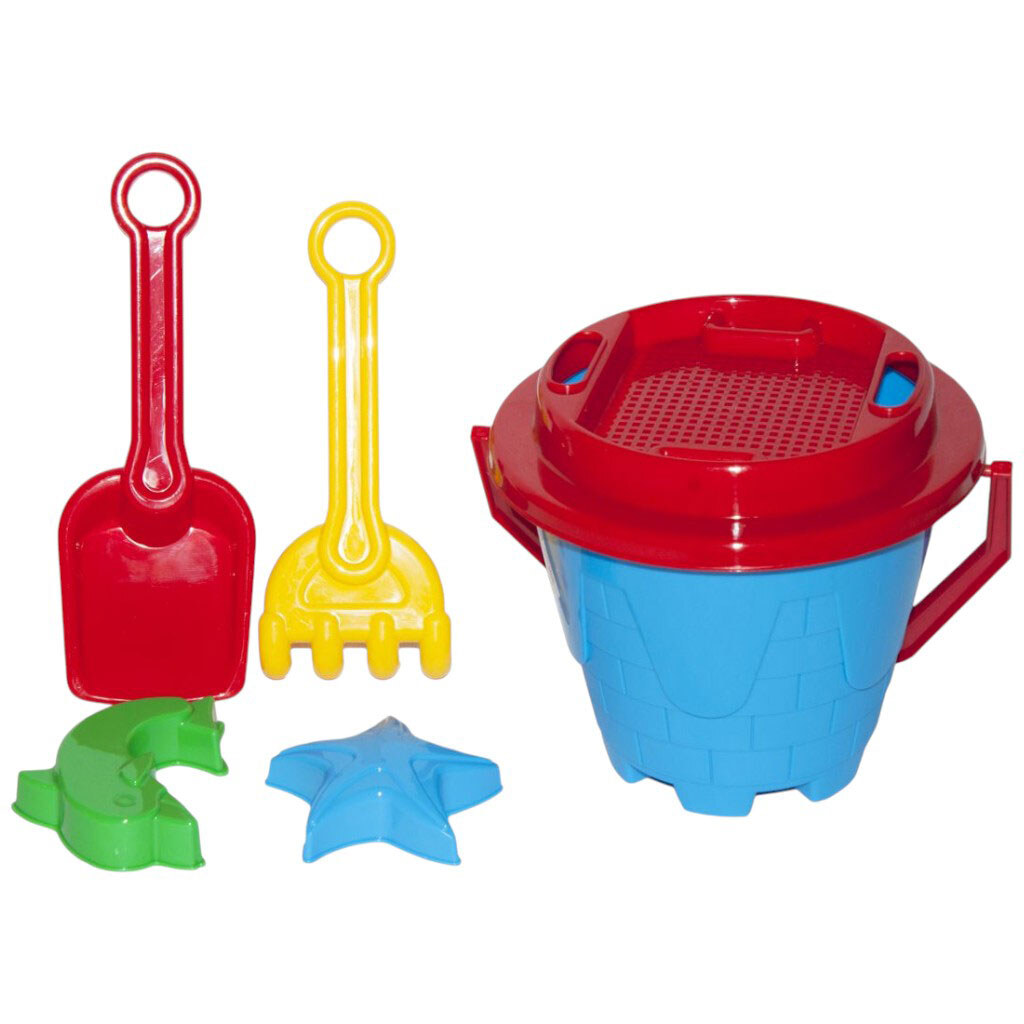 Примечание: Вес в упаковке: 185 г | Габариты в упаковке: 18 x 17 x 27 см | Комплектация: Ведёрко с удобной ручкой, лопатка, грабельки, 2 пасочки и сито