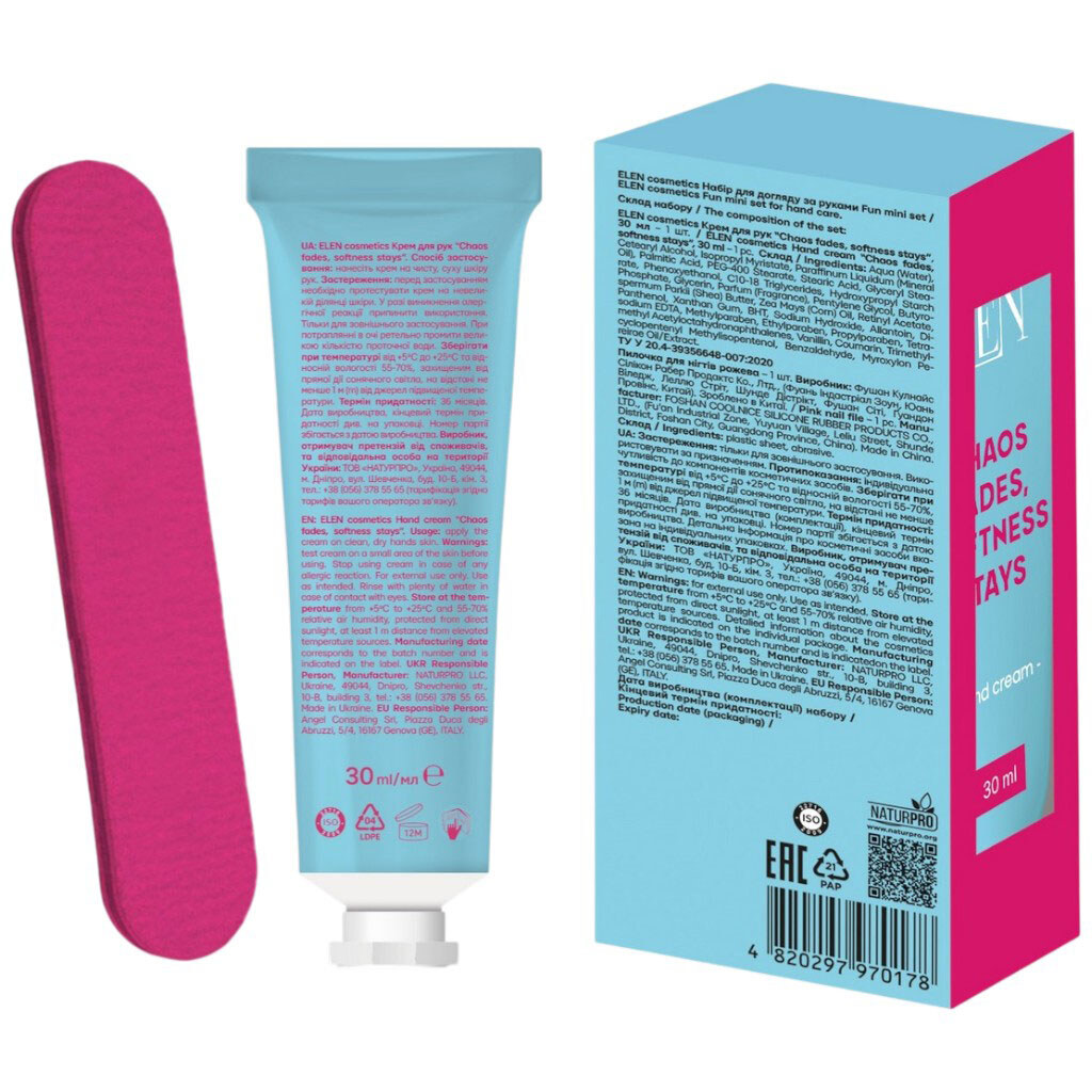 Набор по уходу за руками ELEN cosmetics Fun mini: крем, пилочка