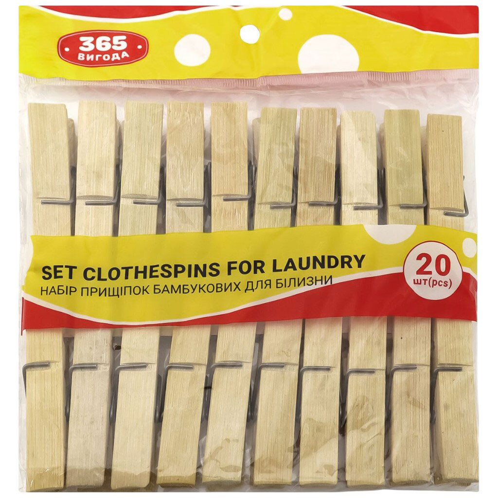 Набор прищепок для белья бамбуковое "365", 7 см, 20 шт., 365 вигода