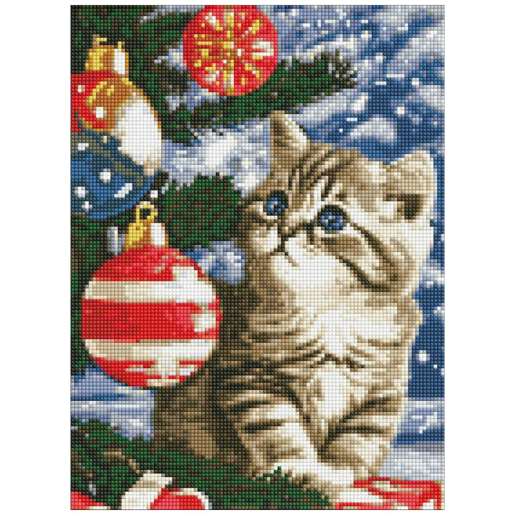 Набор с алмазной мозаикой "Котенок под елкой", с АВ стразами 30х40см, Ідейка
