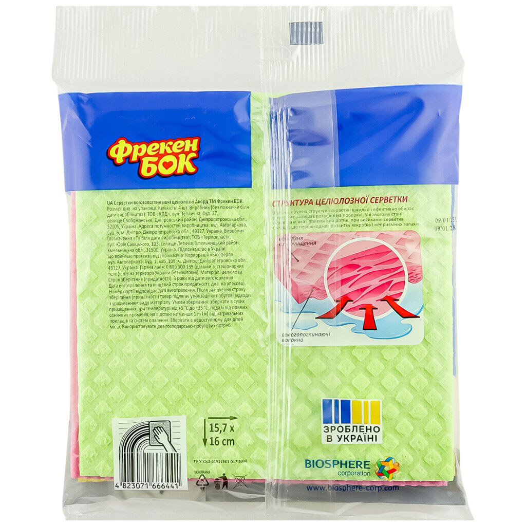 Примечание: Страна производитель: Украина | Материал: Целлюлоза | Размер: 16х16 см
