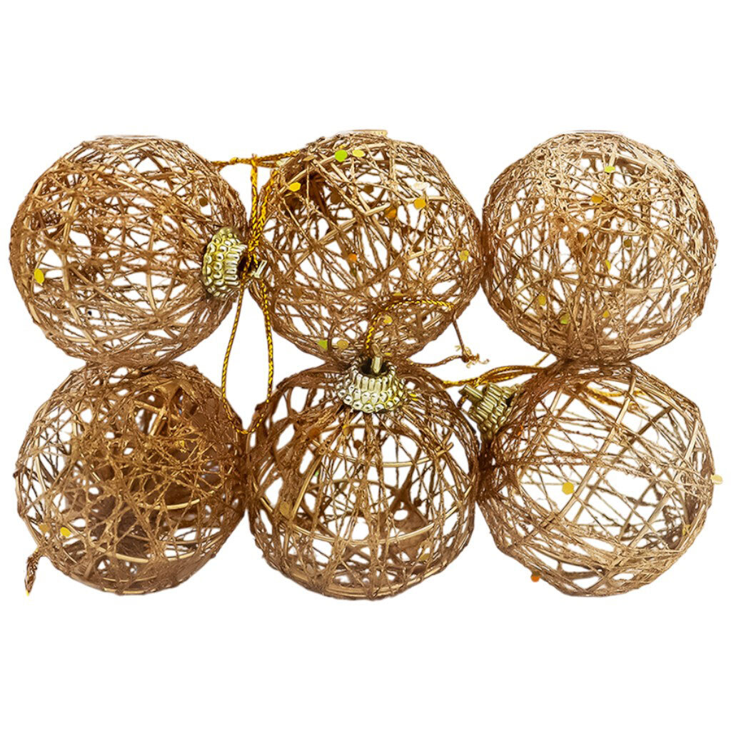 Набор шариков елочных каркасных золотистых, d=5 см, 6 шт.