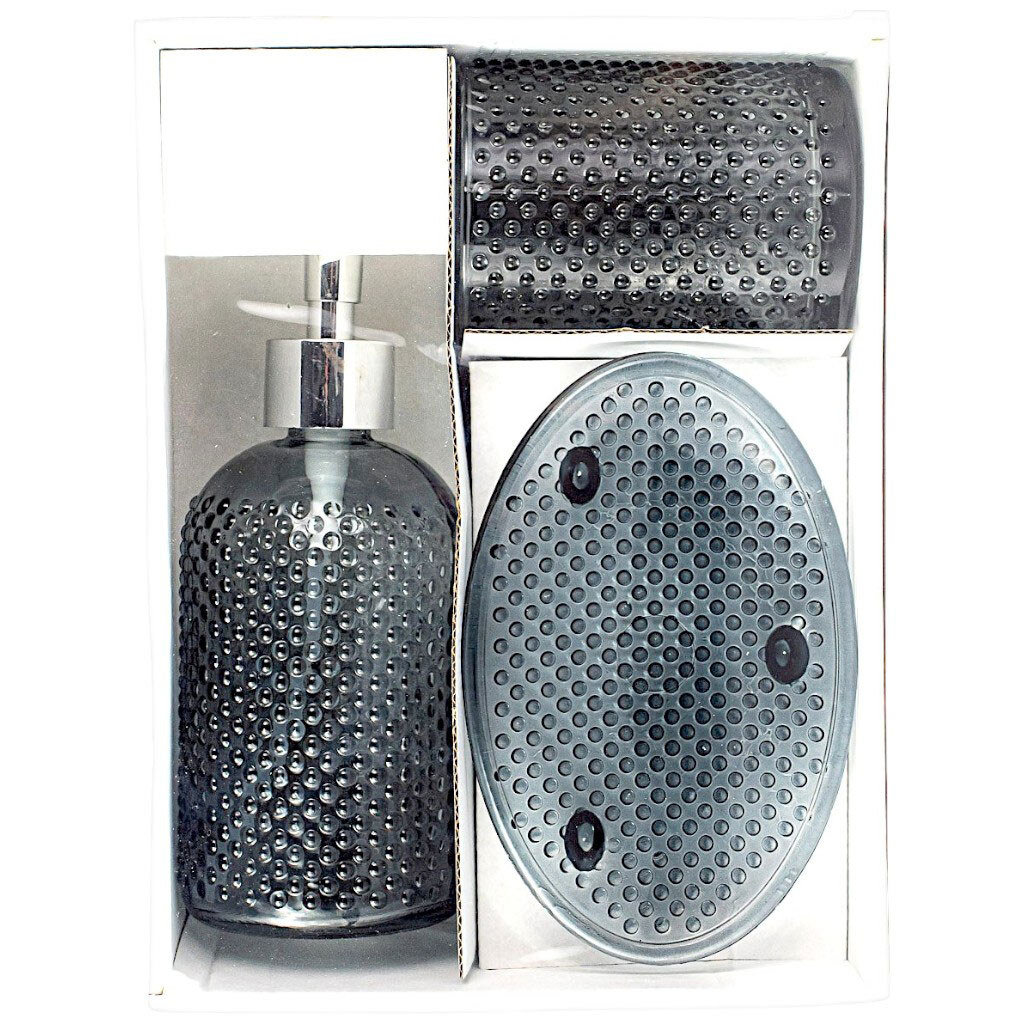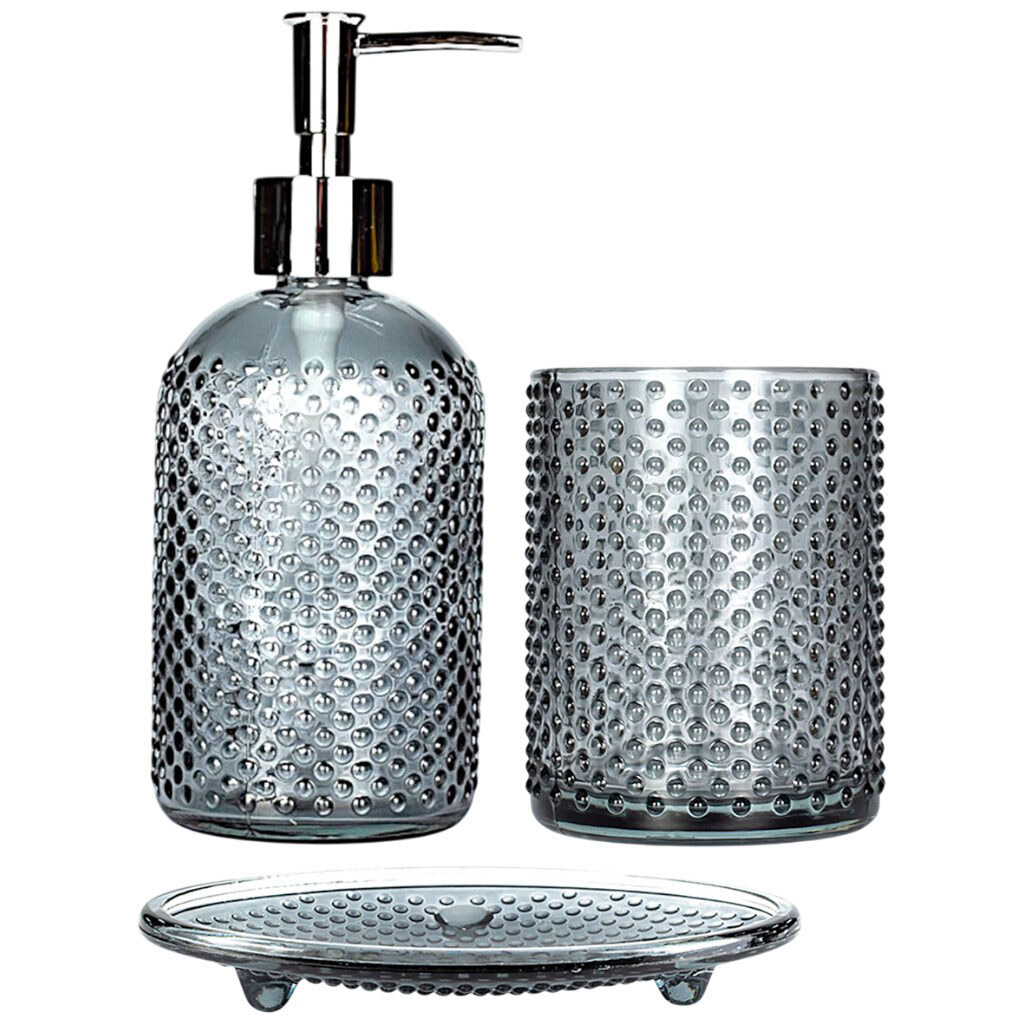 Набор стеклянных аксессуаров для ванной комнаты: дозатор, стакан, мыльница.