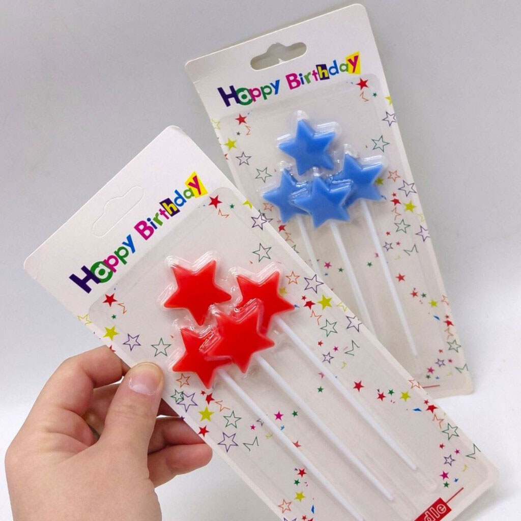 Примечание: Упаковка: Планшет | Вес в упаковке: 26 г | Габариты в упаковке: 9.5 x 1.5 x 24 см | Страна производитель: Китай | Комплектация: Свечи для торта в форме звезд – 4 шт., пластиковые держатели (встроенные)