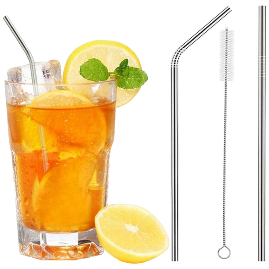 Набор: трубочки для коктейлей металлические 2 шт.