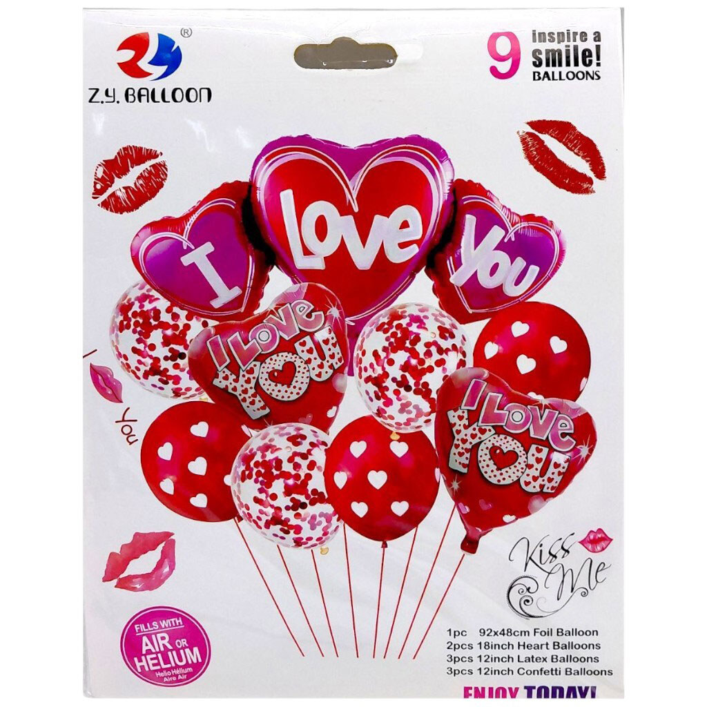 Набор воздушных шаров, фольгированных "Сердца", 9 шт, Mic