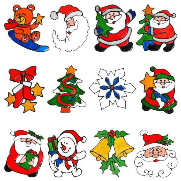 Наклейка силиконовая с новогодними рисунками на стекло, микс видов, 1 шт, 15x15см, Mic