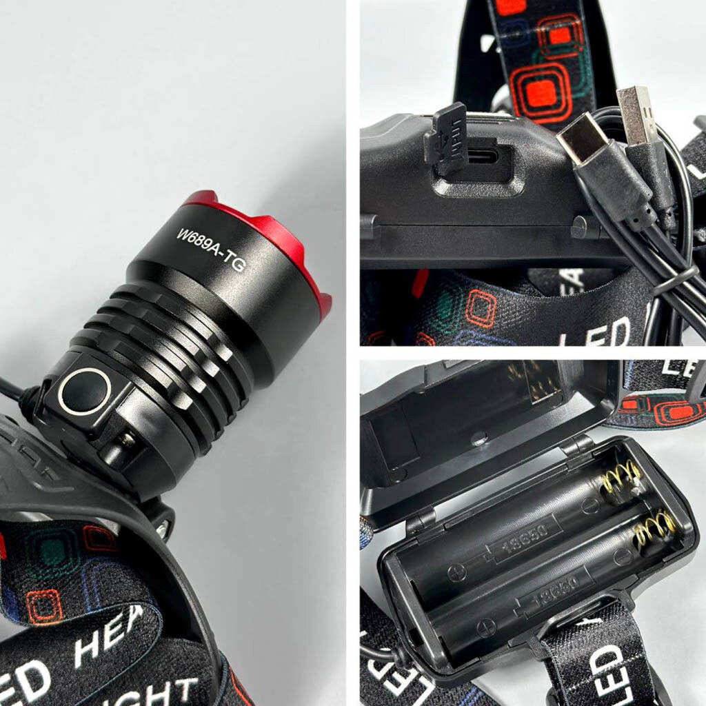 Налобный фонарь W689A-TG, Черный