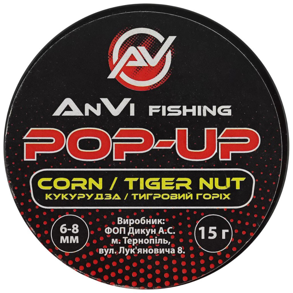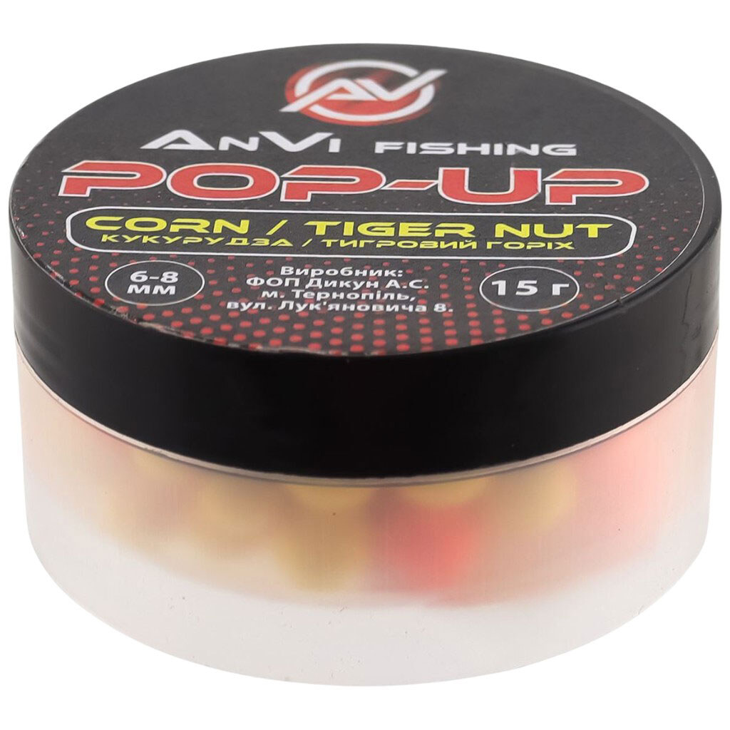 Насадка для рыбалки AnVi Fishing Рop-up Кукуруза, тигровый орех mix, 6-8 мм, 15 г