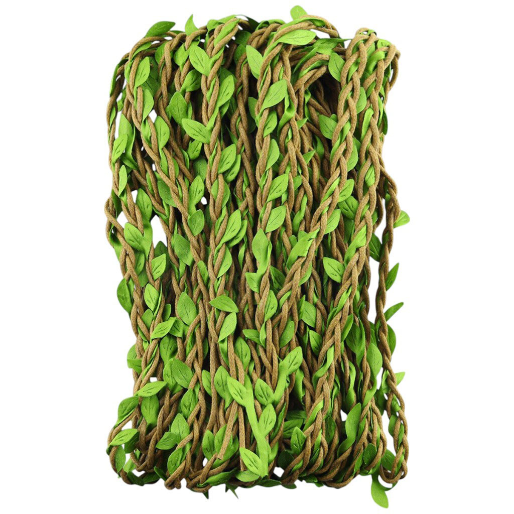 Нить джутовая декоративная для рукоделия с листочками, 10 м