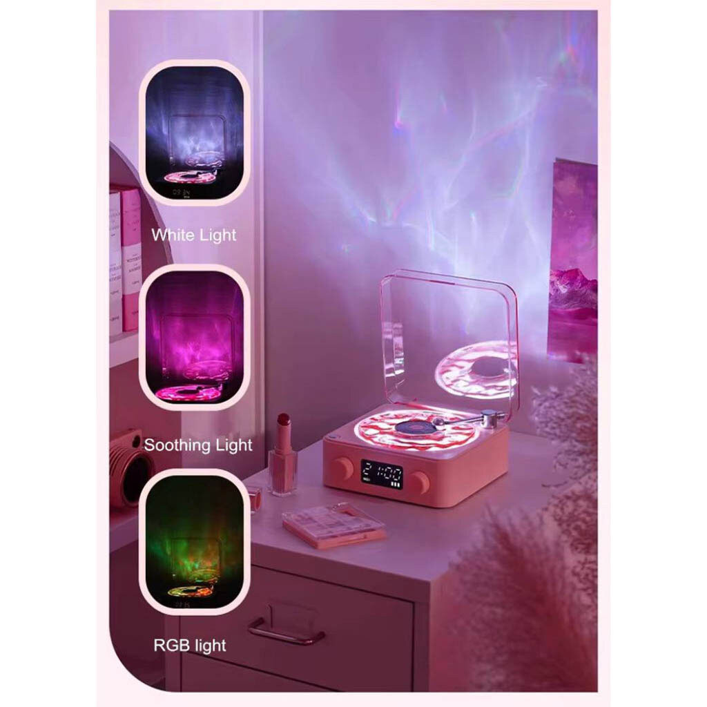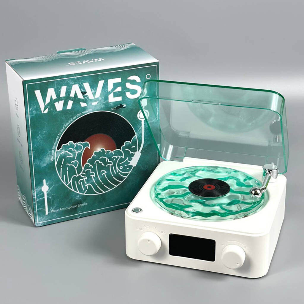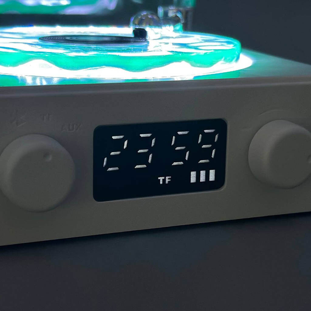 Примечание: в виде громофона, с проекцией волны, часами и дисплеем, Bluetooth, 14 x 14 x 6,5см
