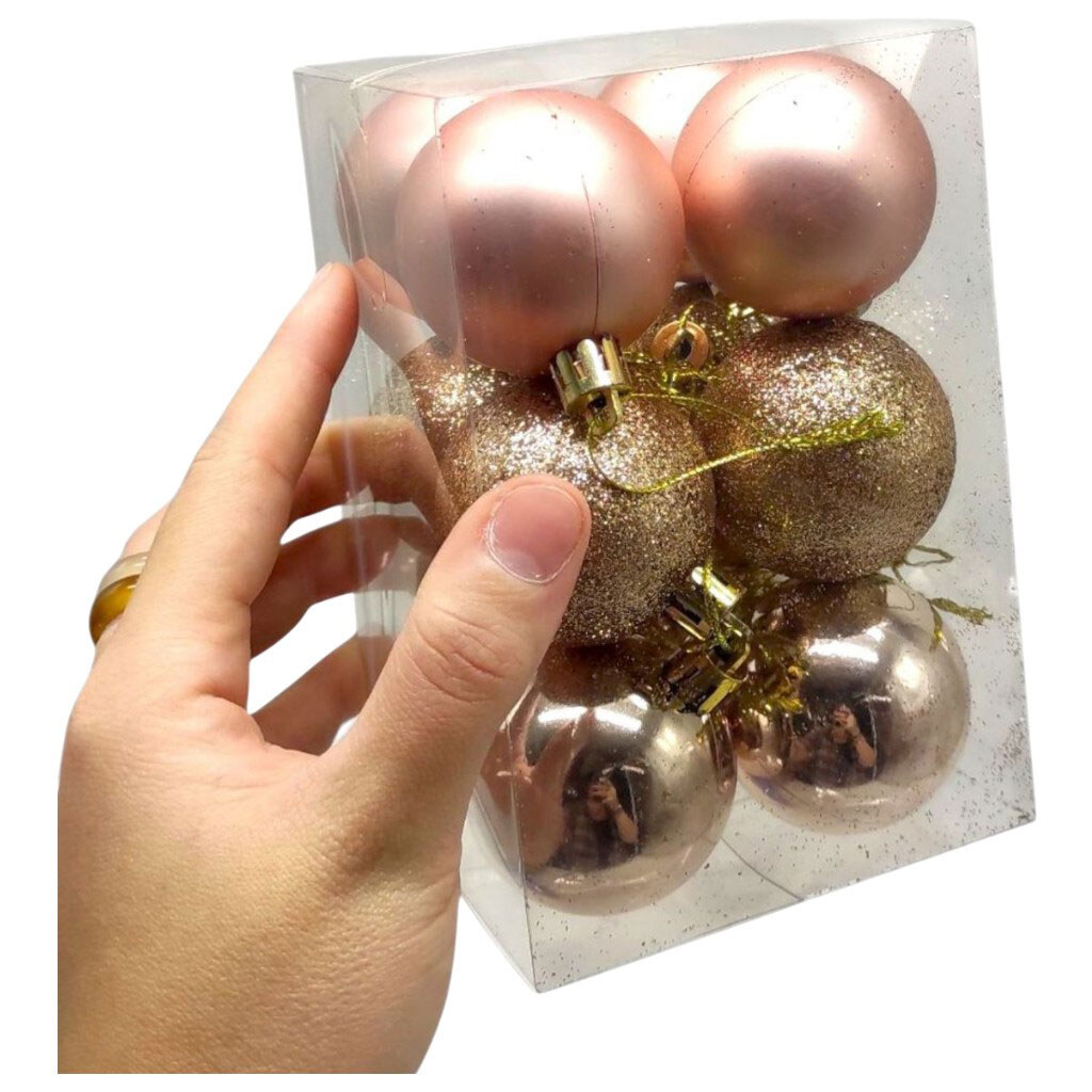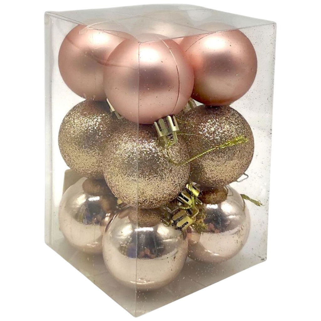 Новогодние украшения 12 штук, диаметр – 4,5 см, золото-розовые, Mic