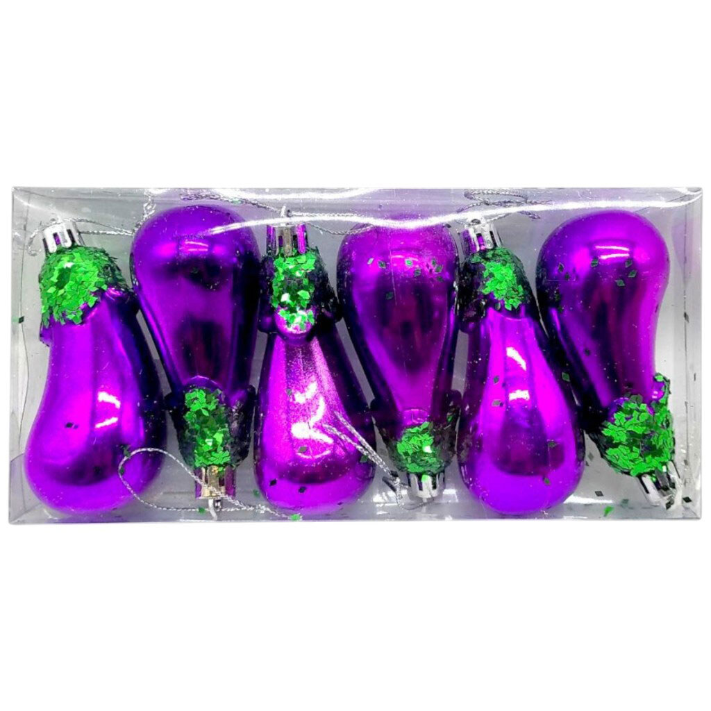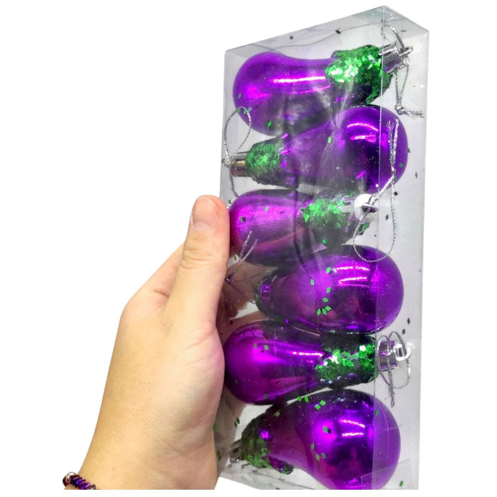 Новогодние украшения, 6 штук, баклажаны, высота 8,5 см, в слюде, Mic