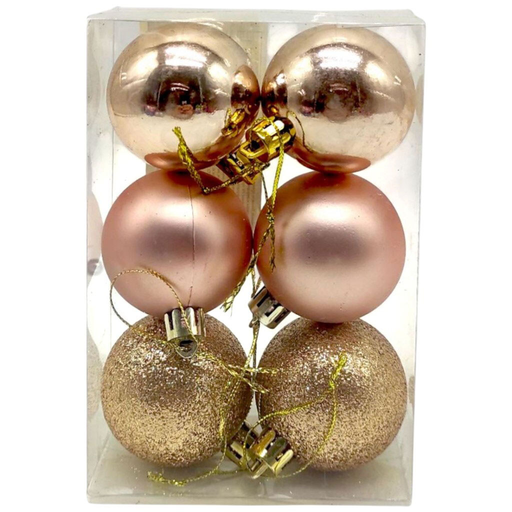 Новогодние украшения, 6 штук, шарики диаметр – 4,5 см, золото-розовые, Mic