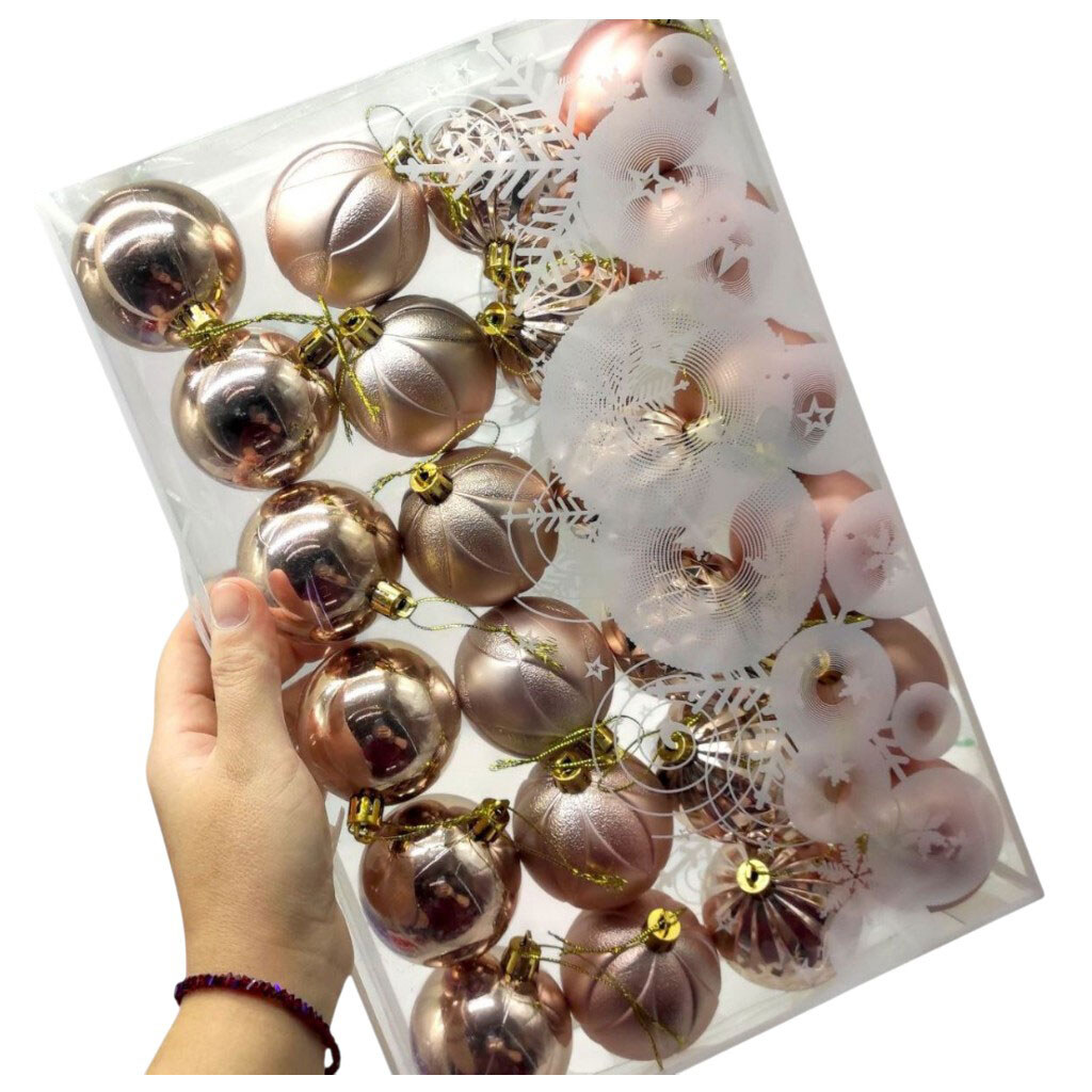 Новогодние украшения, шарики, 18 штук, золото-розовые, Mic