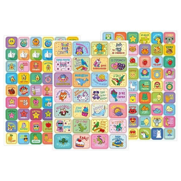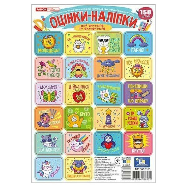 Оценки-наклейки в пакете, 4 листа, 158 наклейок, Ранок