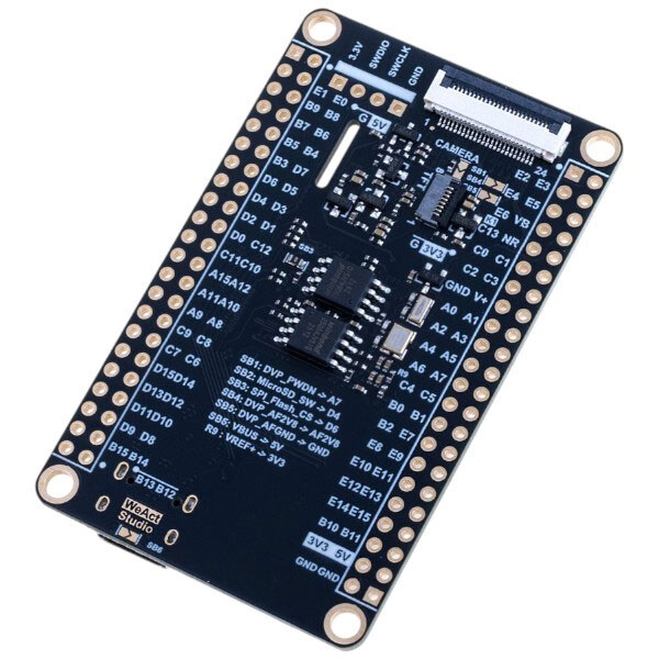 Примечание: Производитель: WeAct | Описание: Отладочная плата с поддержкой OpenMV-прошивки, построенная на ARM Cortex-M7 (до 480 МГц) STM32H743VIT6 (2048 KB ROM, 1 MB RAM). Оснащена microSD-слотом, интерфейсами 8-бит DVP/DCMI, 8 MB SPI Flash (SPI1) и 8 MB QSPI Flash (QSPI1). Расширение: 2×22-конт. шины GPIO (2,54 мм), 4-конт. SW-интерфейс (2,54мм), USB Type-C. Управление: K1 (PC13), NRST и BOOT0. Плата подходит для обработки изображений, работы с камерами и системами ИИ. | Тип средств разработки: Настраиваемая плата Контроллер: STM32H7