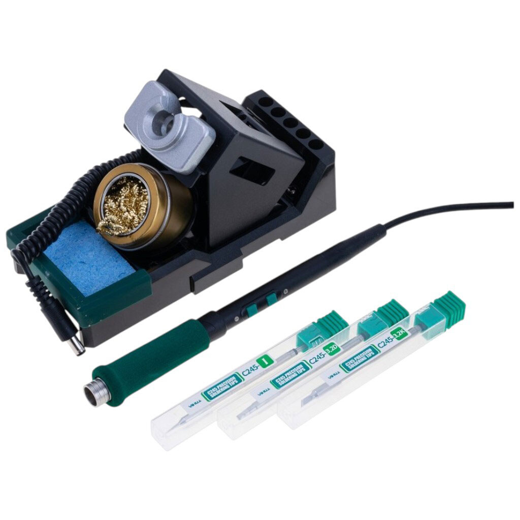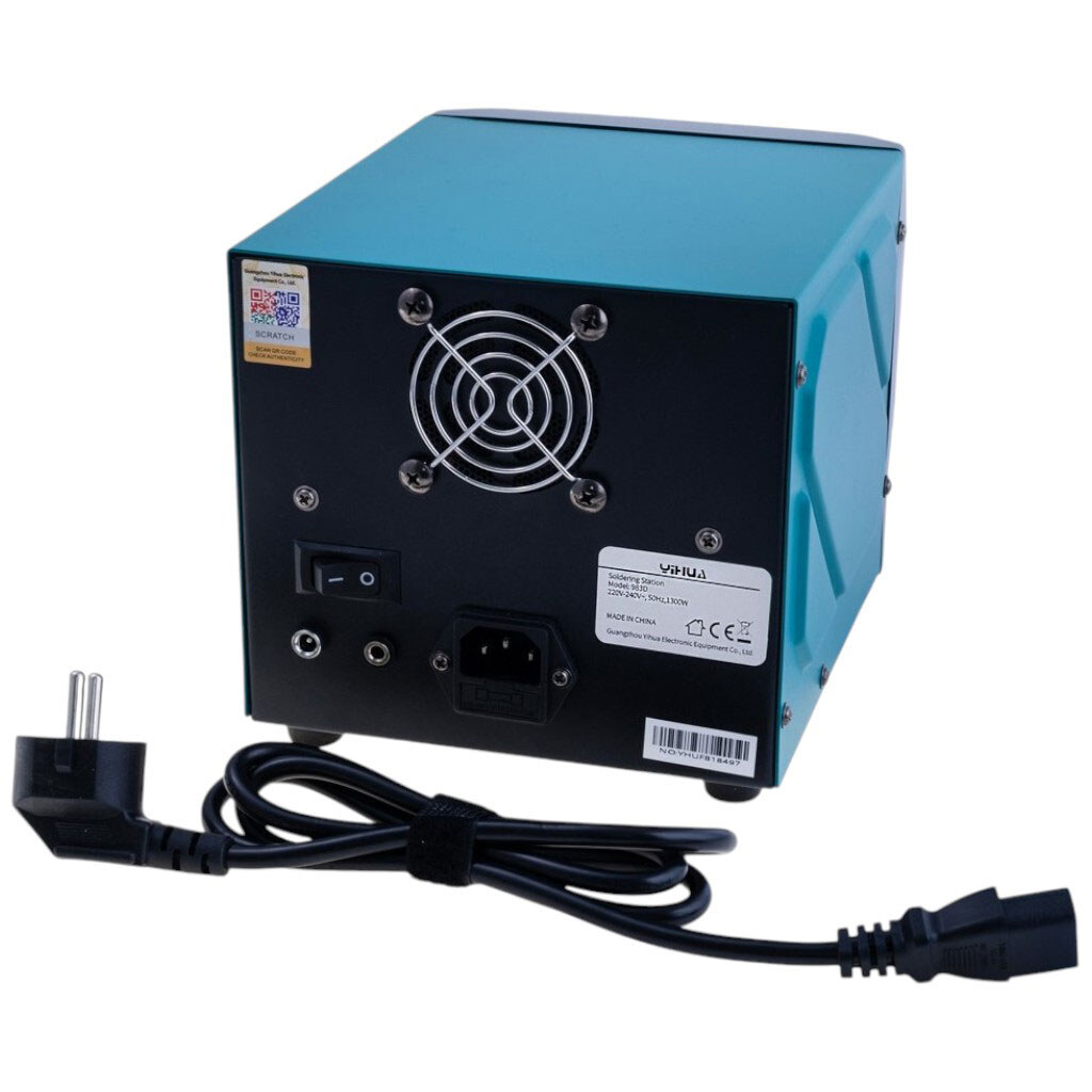 Примечание: Универсальная 3-в-1 ремонтная станция мощностью 1300W, совмещает в себе паяльник, термофен и регулируемый источник постоянного напряжения. Оснащена LCD-дисплеем. Паяльник C245 с низким сопротивлением жалa (<2 Ом) температурный диапазон 90...450°C, что гарантирует стабильный нагрев. Термофен температурный диапазон 100…500°C/ поток воздуха до 150 л/мин. Блок питания выход 0...20V/ток 3,5 А. Идеальный выбор для сервисных центров и мастерских. Габариты: 222x170x148mm. | Напряжение: 220 V | Мощность: 1300 W