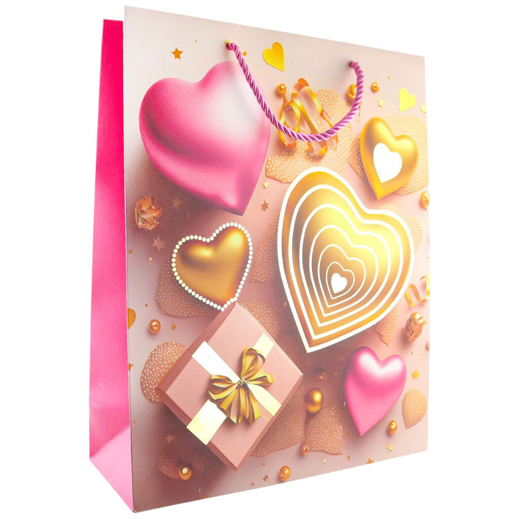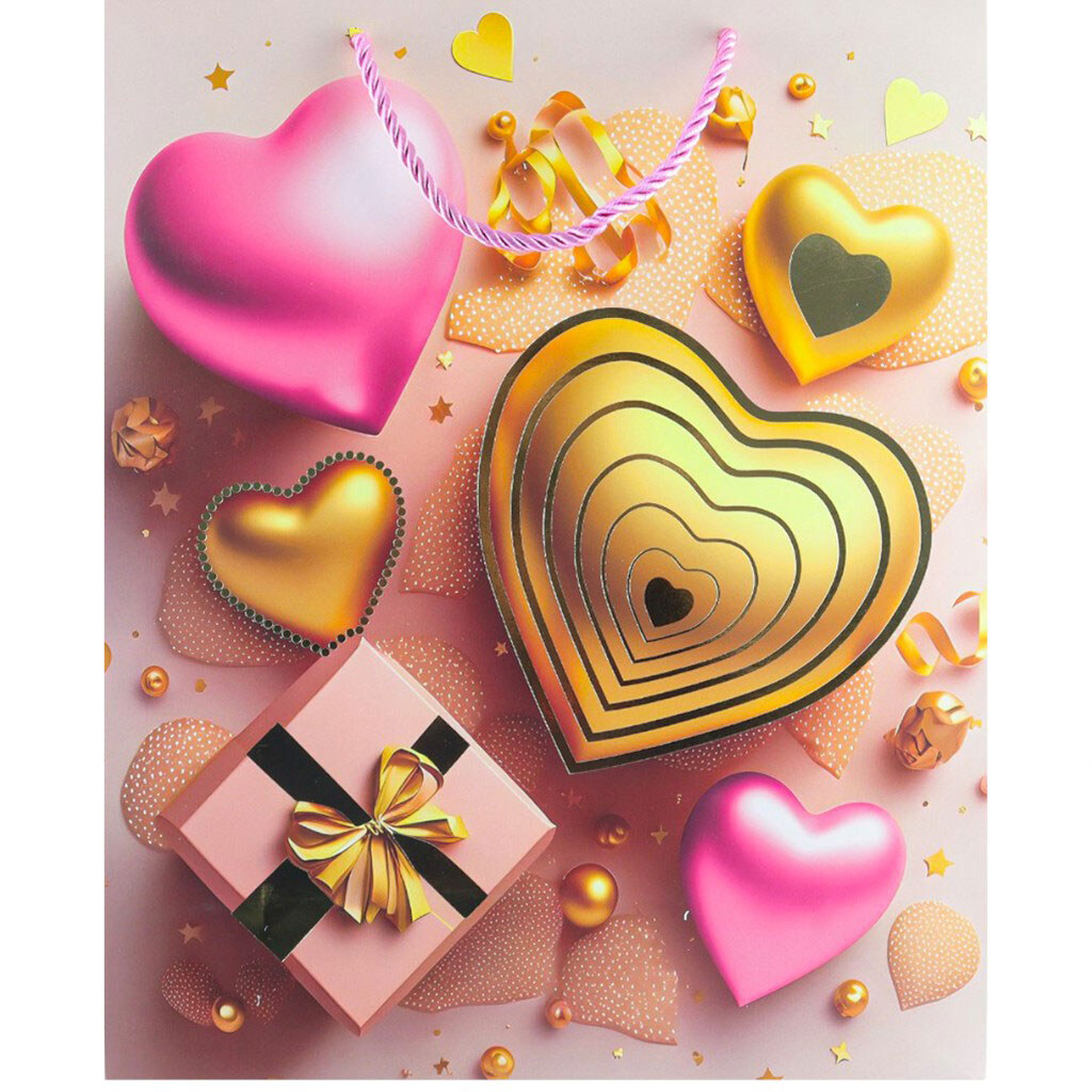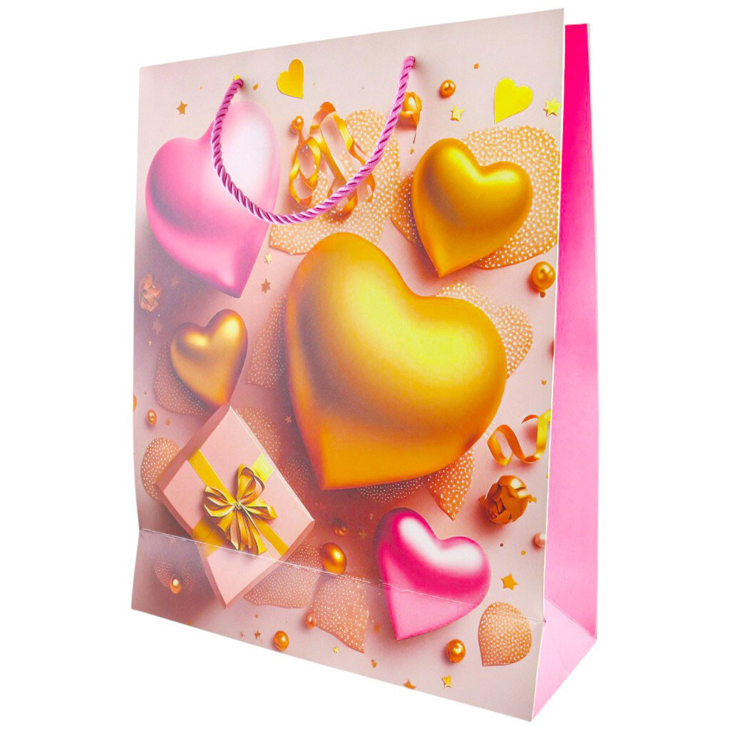 Пакет подарочный бумажный с принтом Сердца 26х10х32 см