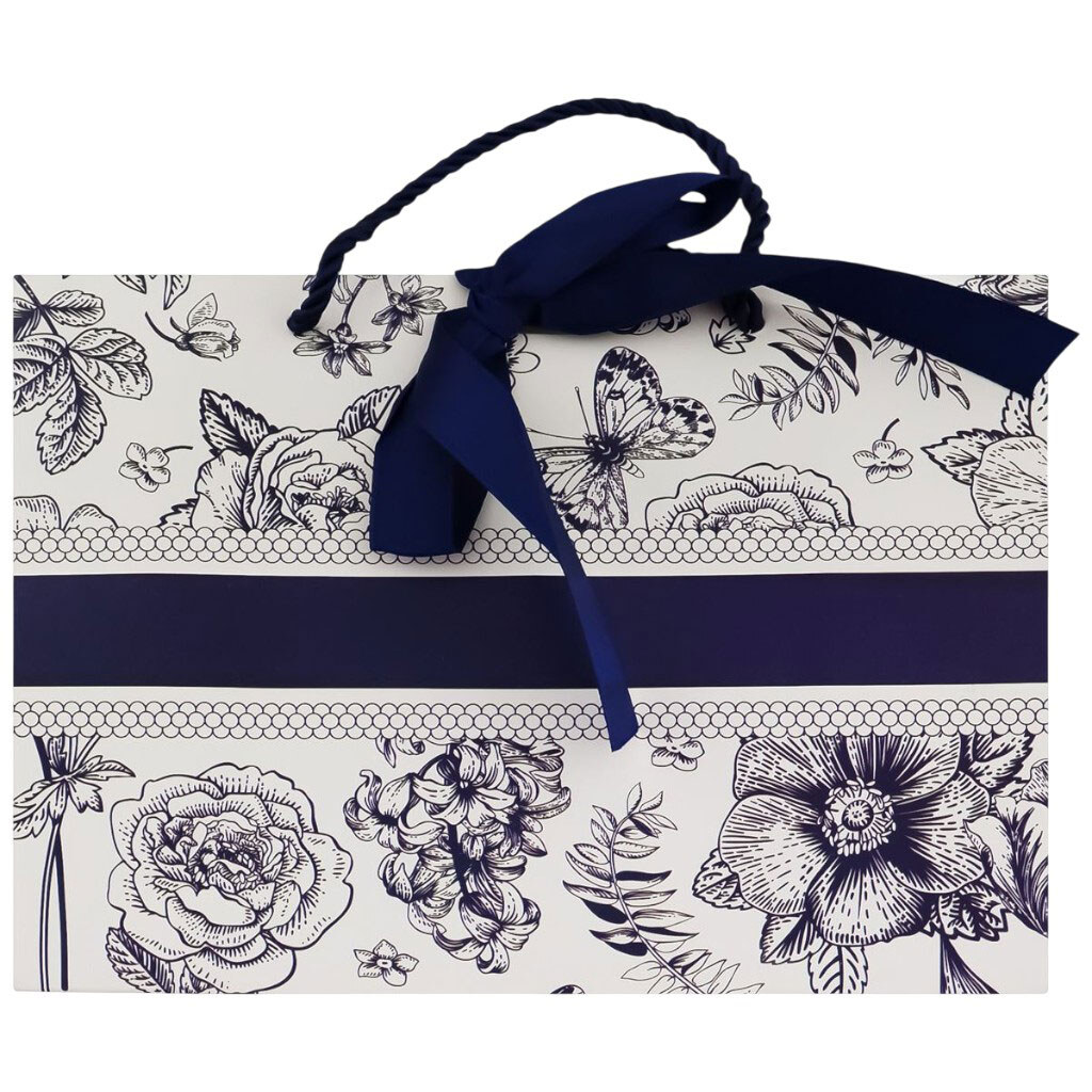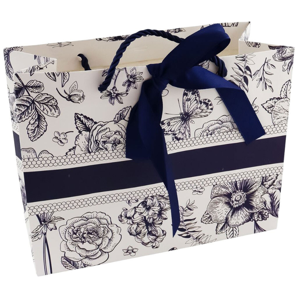 Пакет подарочный бумажный с синим узором, 23х18х10 см.