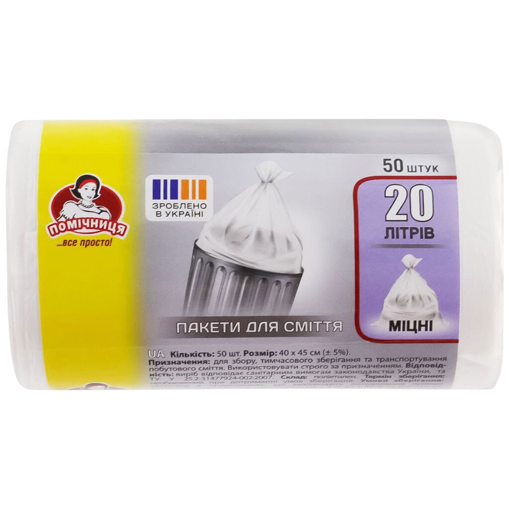 Примечание: Количество в упаковке, шт: 50 | Страна производитель: Украина | Материал: полиэтилен | Объем: 20 л | Размер: 40х45 см