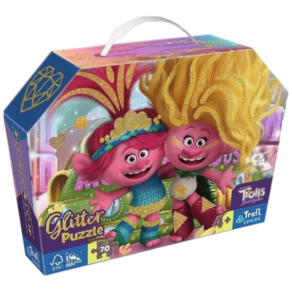 Пазлы 70 элм., Глитерные "Тролли", Trefl