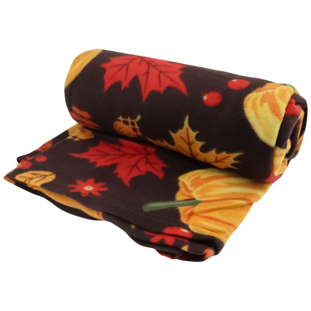 Плед полуторный флисовый с осенним принтом "Тыквы", 150х200 см.