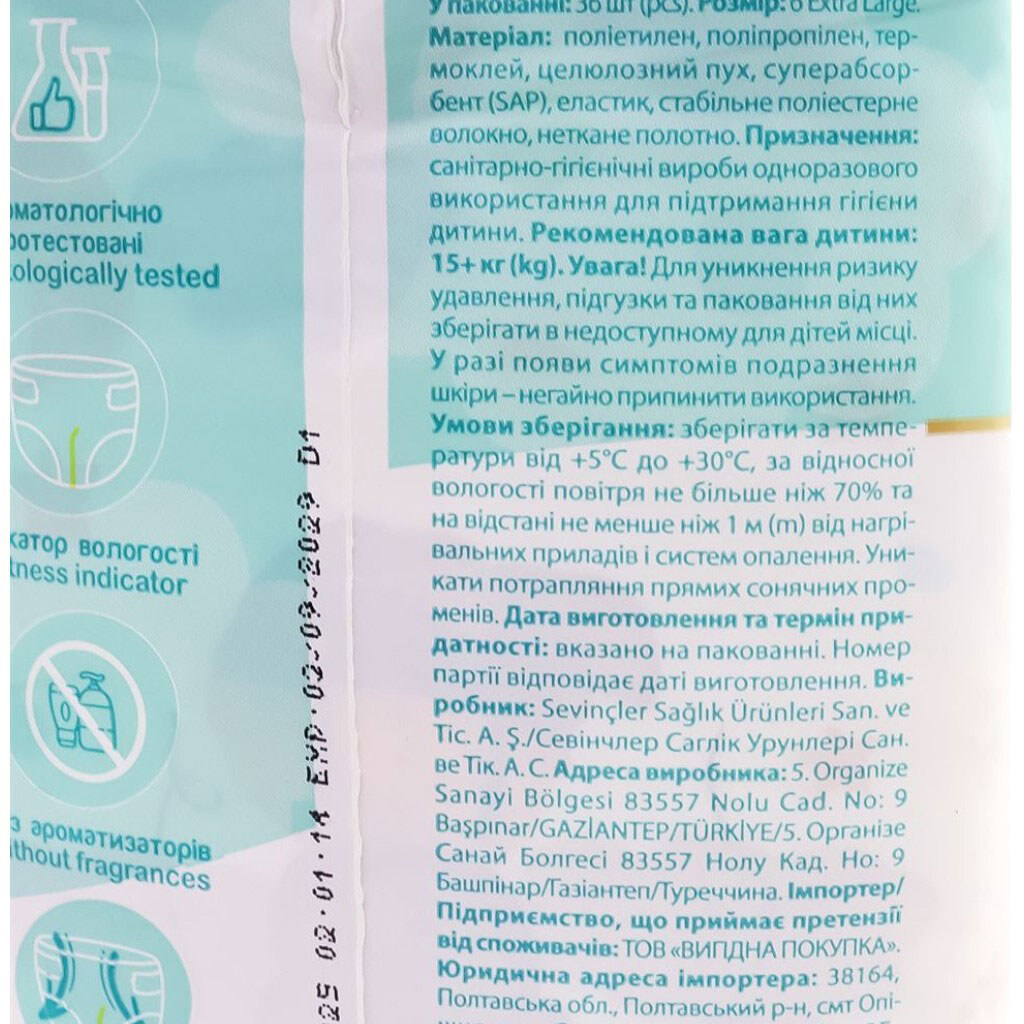 Подгузники детские Lirro "Extra Large", 6", 15+кг, 36 шт/пач