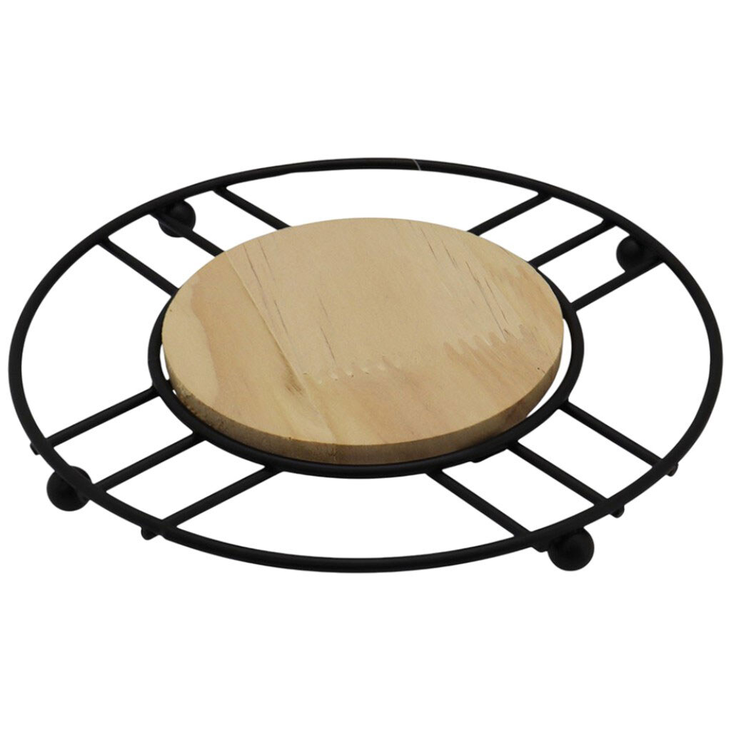 Подставка под горячее металлическое круглое деревянное основание, d=18,4 см