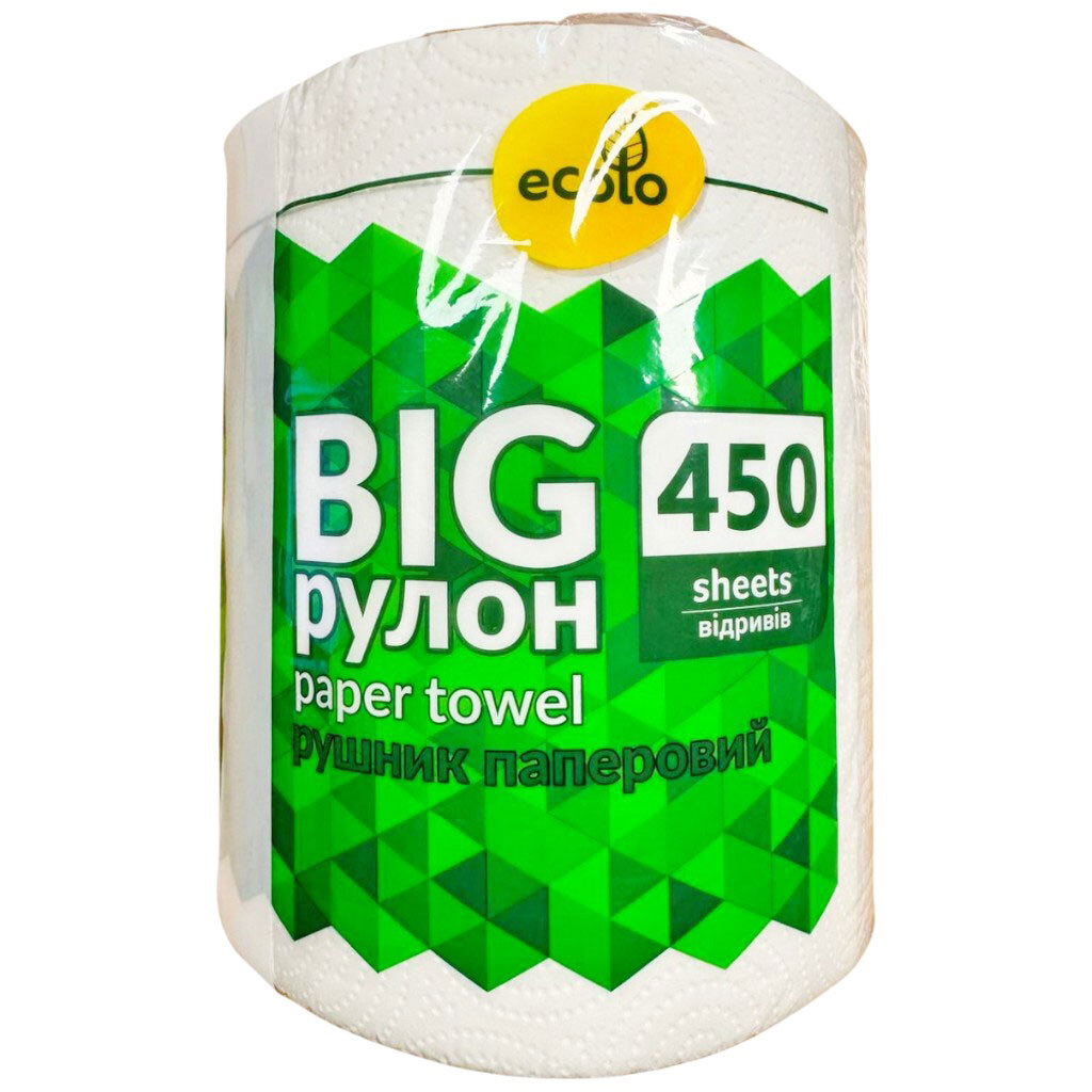 Полотенце бумажное Ecolo Big белое 2 слоя, 450 отрывов, 1 рулон