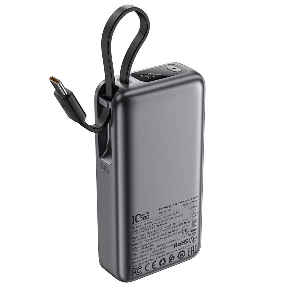 Купить портативные зарядные устройства. Какая гарантия на Портативная батарея (Power Bank) AceFast M7, 10000 mAh, Черный?