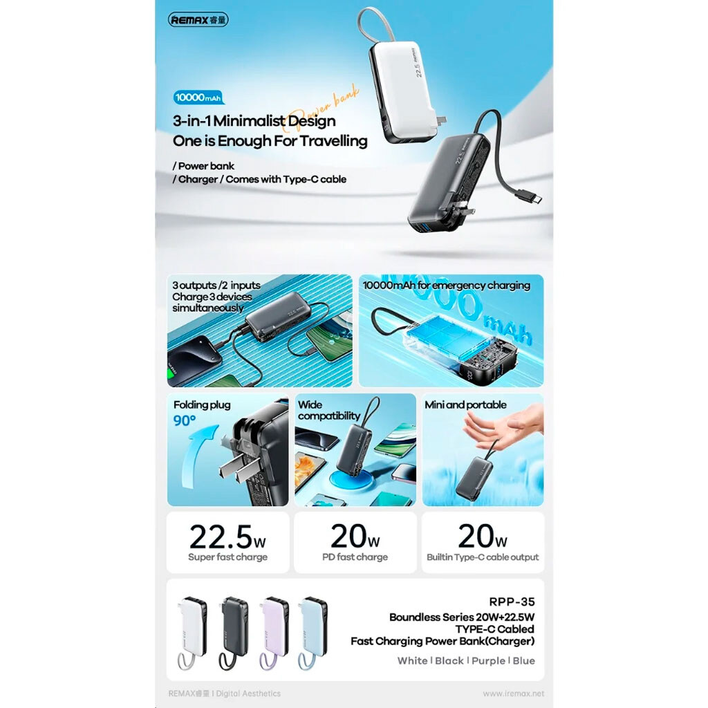 Цена на Портативная батарея (Power Bank) Remax RPP-35, 10000 mAh, Черный - 1027. Товар 707331 в наличии и доступен к отправке.