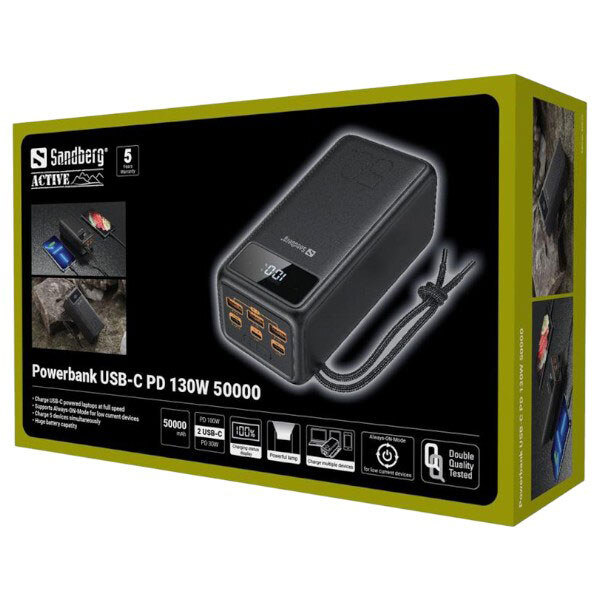 Купить портативные зарядные устройства. Какая гарантия на Портативная батарея (Power Bank) Sandberg Powerbank, 50000 mAh, Черный?