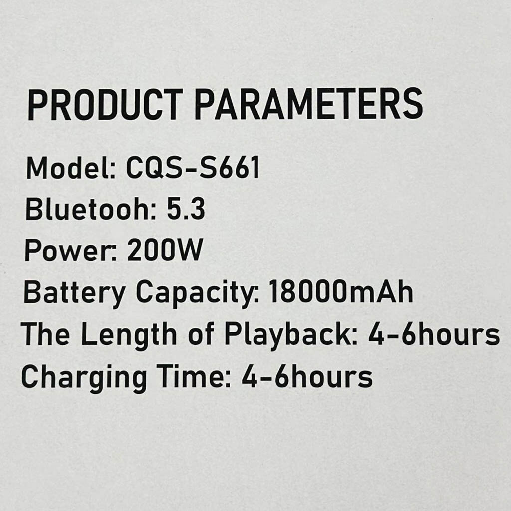 Примечание: 200W, 18000mAh, с 2-мя микрофонами, 37.3 x 20.9 x 15.4 см