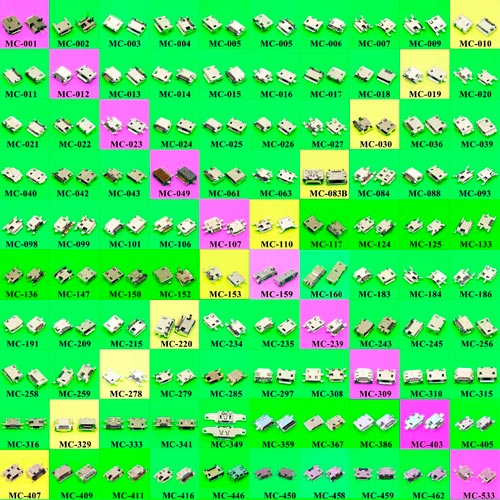 Набор из 100 пятиконтактных MicroUSB гнезд для смартфонов, планшетов и прочих устройств.