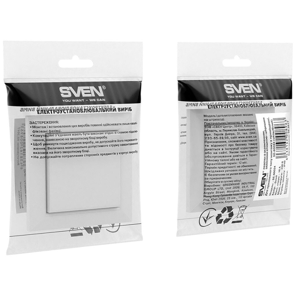 Розетка одинарная с заземлением встроенная SVEN SE-60024 белая
