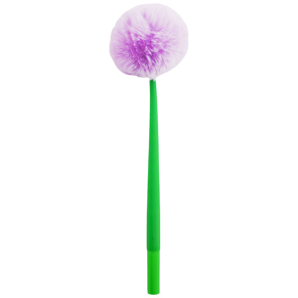 Ручка гелевая силиконовая с цветным помпоном синяя