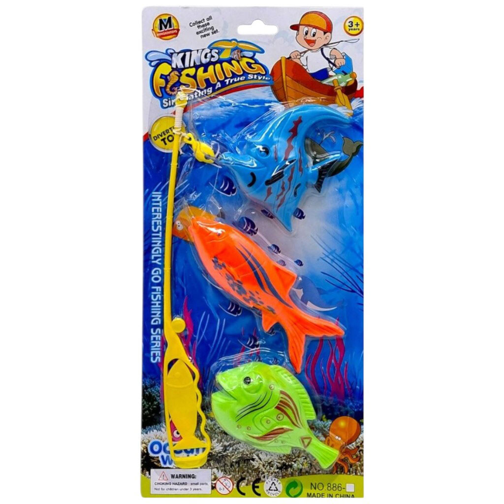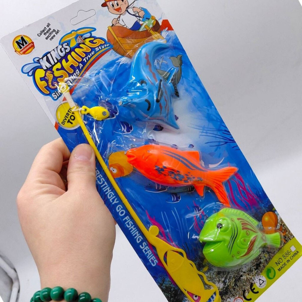 Примечание: Упаковка: Планшет | Вес в упаковке: 50 г | Габариты в упаковке: 14 x 3 x 30.5 см | Страна производитель: Китай | Комплектация: Игрушечные рыбки (3 шт.), удочка для ловли (1 шт.)