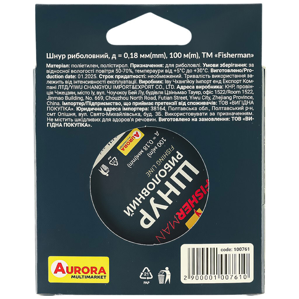 Рыбный шнур Fisherman, d=0,18 мм, 100 м