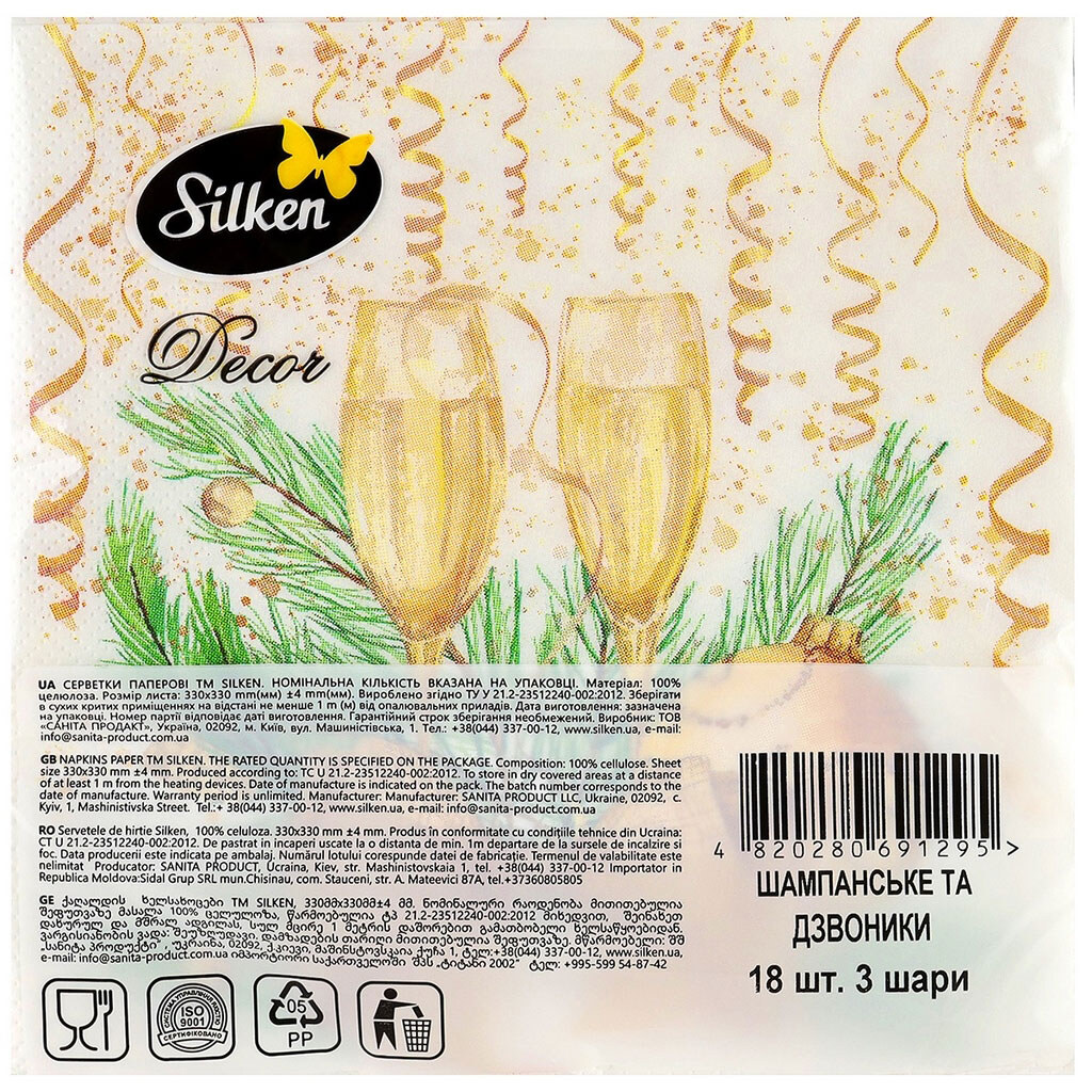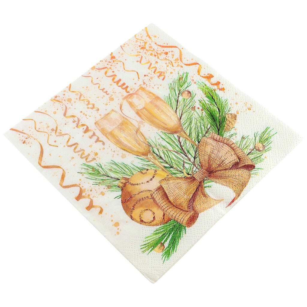 Салфетки бумажные Silken Шампанское, колокольчики 3 шарики 33х33 см