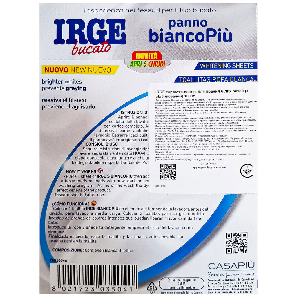 Салфетки-ловушки для стирки белых вещей с отбеливателем IRGE