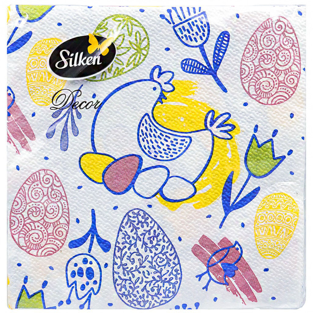 Салфетки Silken Пасхальные "Курочка с писанками", микс, 2 слоя, 33х33см, 16 шт/пач.