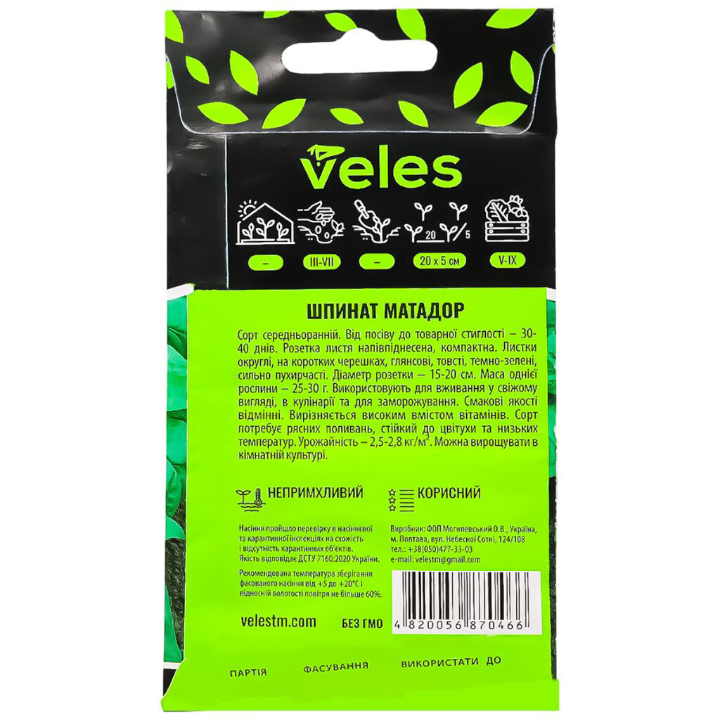 Семена Шпинат ВЕЛЕС Матадор, 3 г