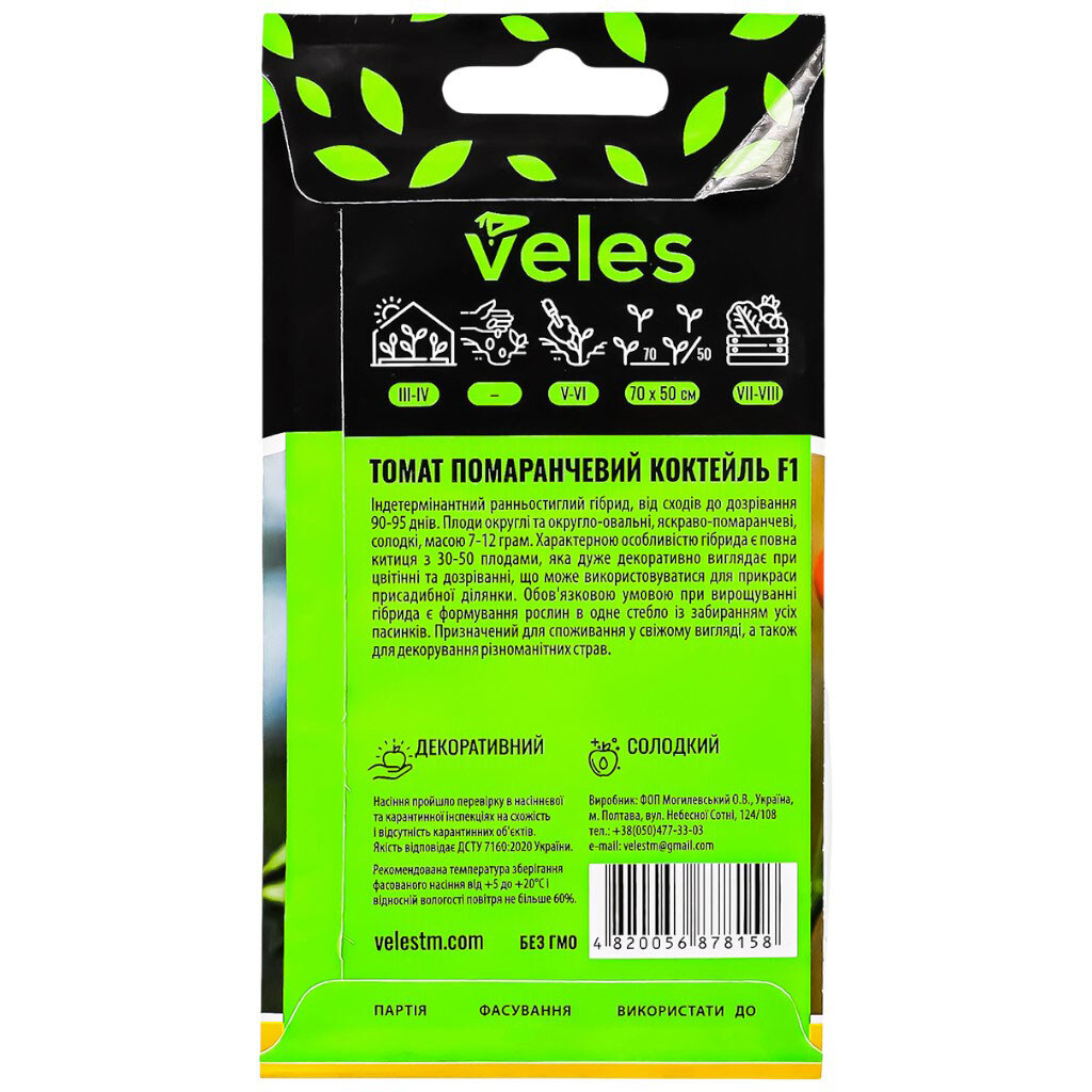 Семена Томат ВЕЛЕС Черри Оранжевый коктейль F1, 0,1 г