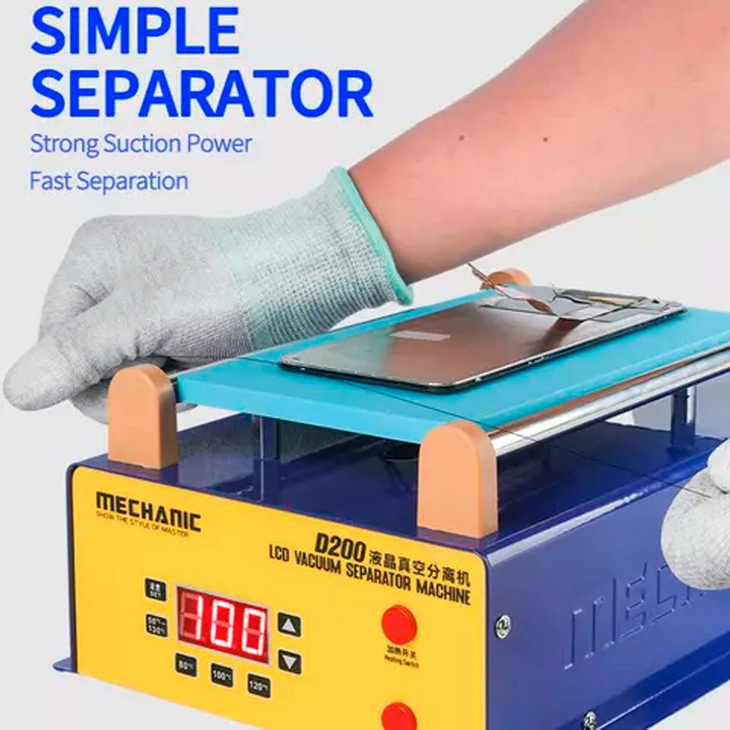 Данные сепараторы применяются для разъединения дисплейного модуля, состоящего из тачскрина (сенсора) и дисплея. Разделяются сепараторы по методу фиксации модуля: механические и вакуумные, механические фиксируют модуль с помощью зажимов с резиновыми ножками, вакуумные сепараторы имеют встроенный компрессор который фиксирует модуль вакуумом через отверстия в нагревательном планшете. Разрезание модуля происходит после нагрева с помощью струны которую тянут по направляющим.