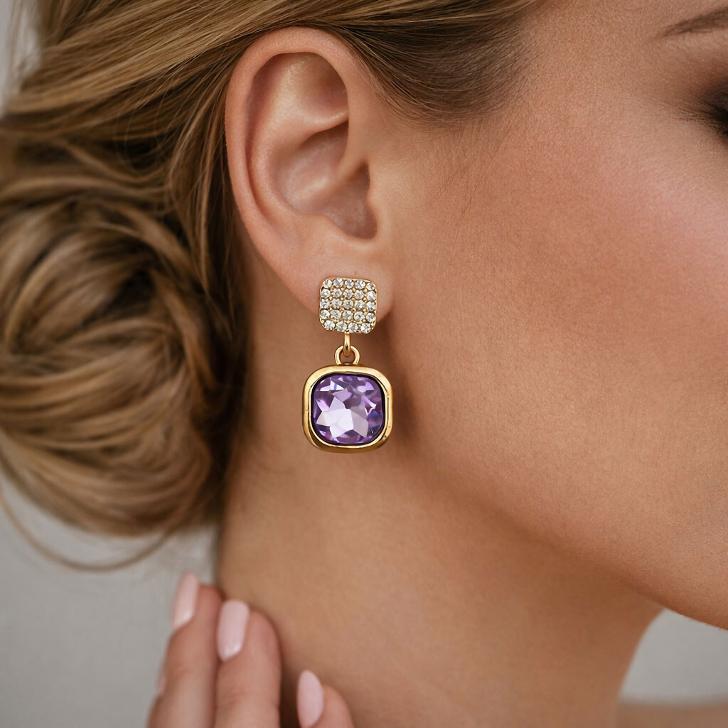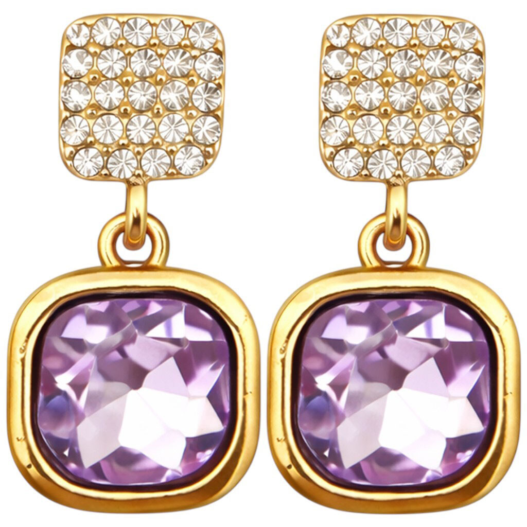 Серьги женские с камешками, подвесками "Квадраты"