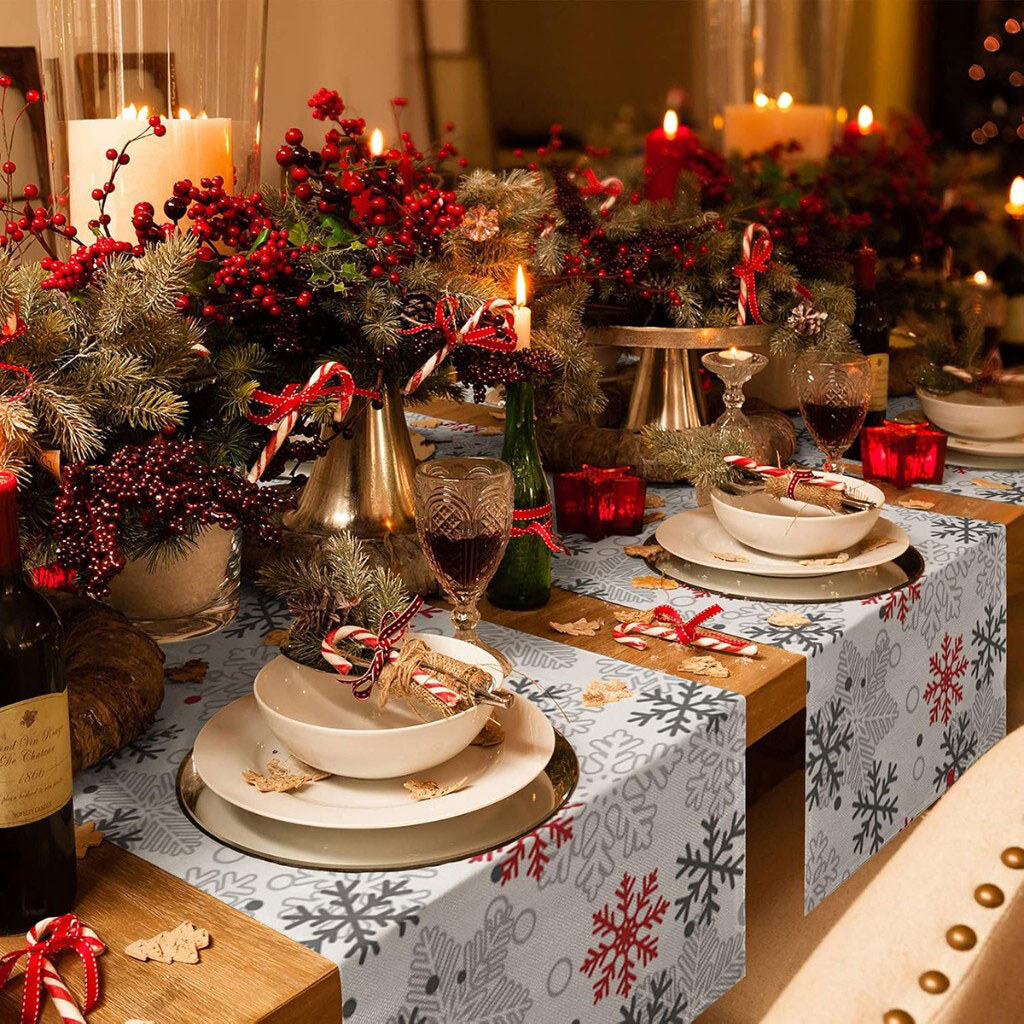 Скатерть-ранер декоративная с принтом "Снежинки", 33х180 см