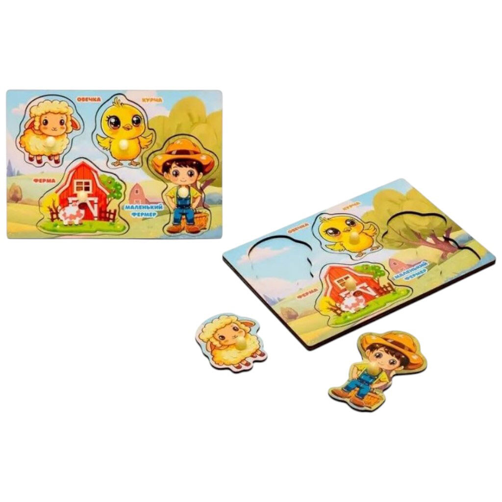 Сортер-вкладыш "Ферма", деревянный, Puzzleok