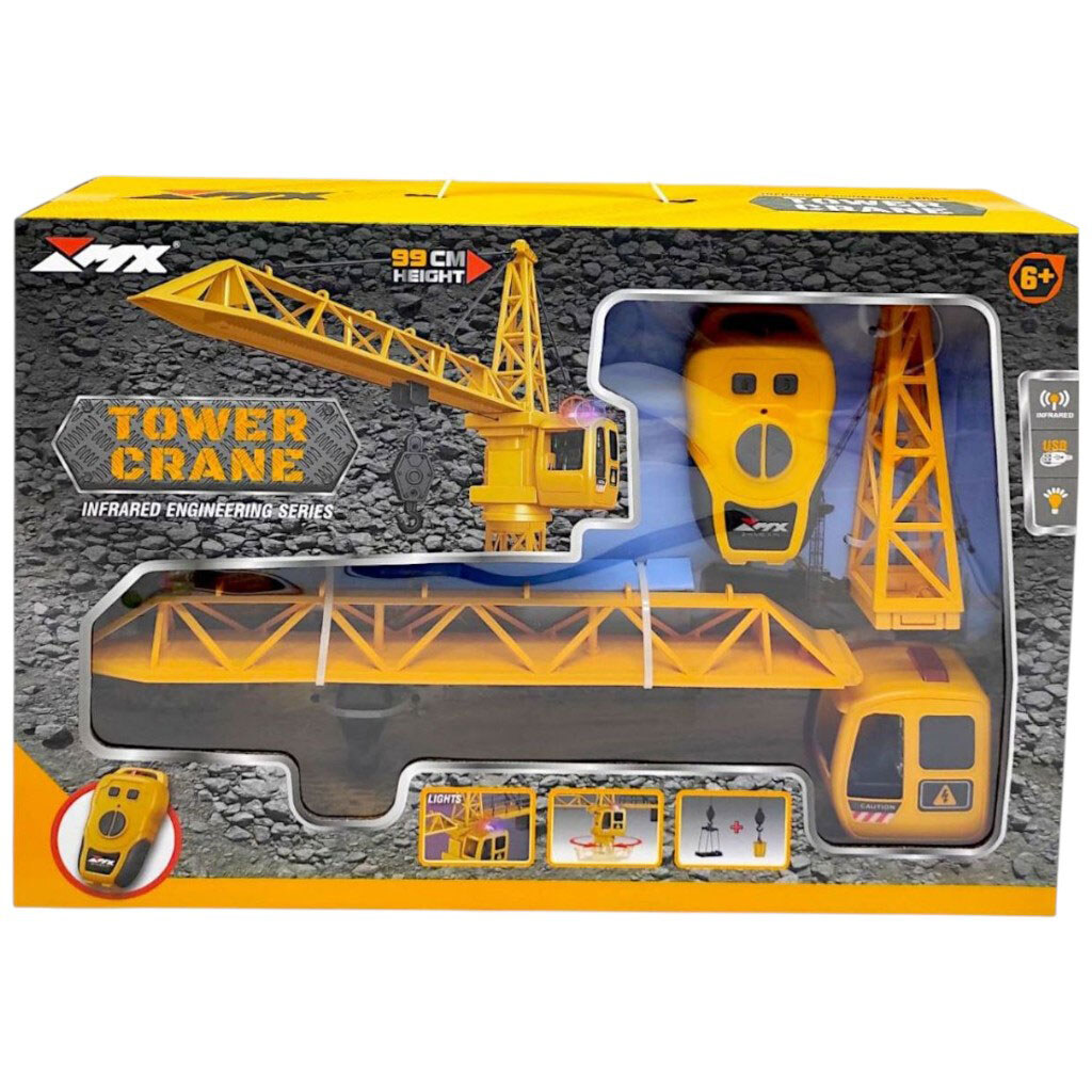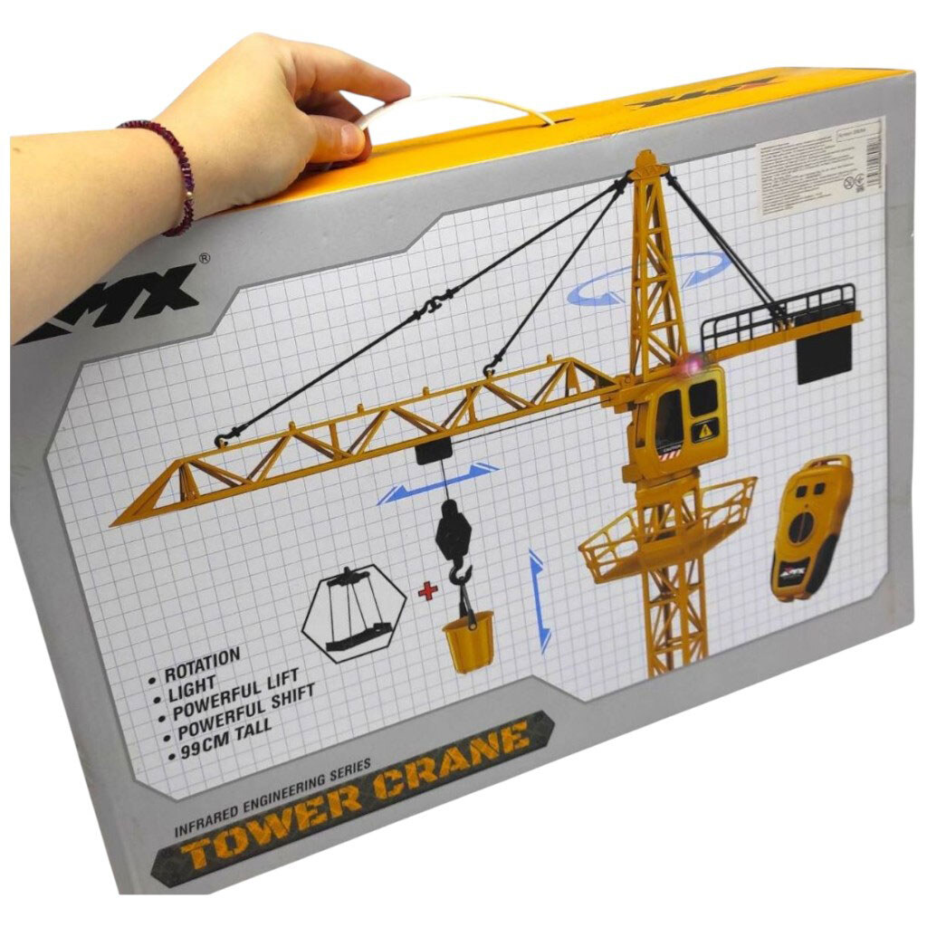 Спецтехника на радиоуправлении "Башенный кран", подсветка, акум. 3.7V, USB-кабель, пульт, автоматический подъемный кран, Mic