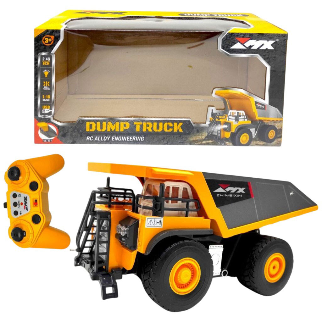 Спецтехника на радиоуправлении "Самосвал", металлопластик, подсветка, акум. 3.7V, USB-кабель, пульт 2.4 GHz, масштаб 1:18, Mic